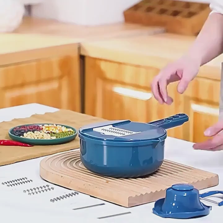 Level up your kitchen game with this Heavy-Duty Vegetable Chopper featuring 6 ultra-sharp interchangeable blades for slicing, dicing, grating, shredding, and cubing in seconds! Whether you're prepping for a quick salad or a feast, this manual chopper delivers precision cuts and effortless speed — all without electricity.